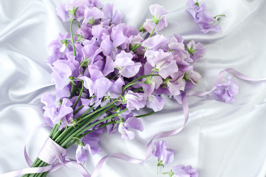 私の大好きなスイートピーの品種のひとつに「グレース」という名前の薄紫色の花があります。